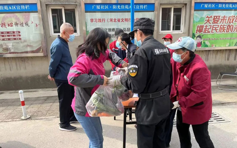 在全面封控管理的第四天(4月28日),考慮到連續(xù)封控期間,業(yè)主足不出戶(hù),家里的各類(lèi)物資供應(yīng)成了一大難題,在中誠(chéng)房地產(chǎn)公司勇于承擔(dān)社會(huì)責(zé)任的大愛(ài)倡議下,安排廣廈物業(yè)公司為競(jìng)秀區(qū)及蓮池區(qū)在管12個(gè)項(xiàng)目3000余戶(hù)業(yè)主免費(fèi)贈(zèng)送“愛(ài)心蔬菜包”。